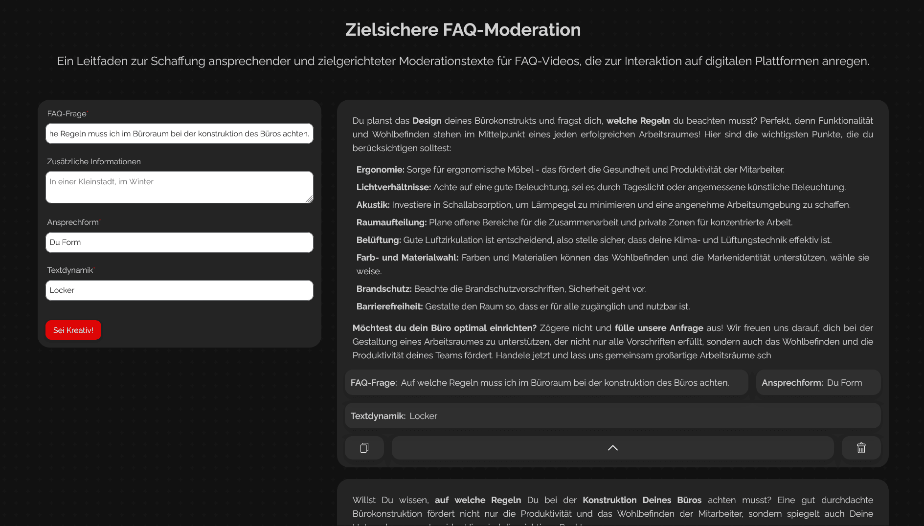Felder ausfüllen, Antwort generieren und mit zahlreichen Ideen durchstarten!